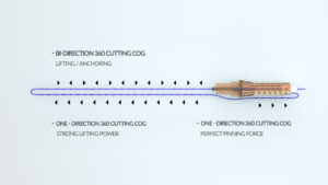 The time machine lift ‘cog’ has the most powerful effect among the commercialized cutting cogs. Made in the most optimal size to maintain the tensile strength of the yarn, it provides high stability and strong and immediate lifting effect. 360 4D / 4X, which are cut with state-of-the-art equipment and technology, maximizes the fixation power and pulling(lifting) force. Precise technical skills minimize cut-off and breakage of lifting thread that may occur during the procedure.